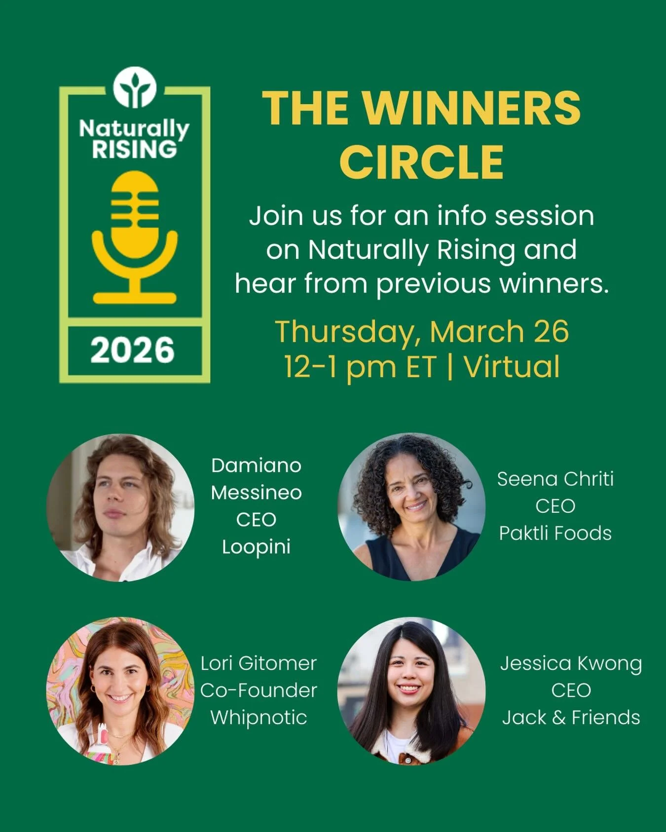 Naturally Rising applications are now LIVE! Naturally Rising is a pitch competition designed to spotlight emerging natural products brands and founders building with purpose, innovation, and impact. Applications deadline has been extended to Tuesday, March 31st, with the pitch event to be announced in May. Learn more here.